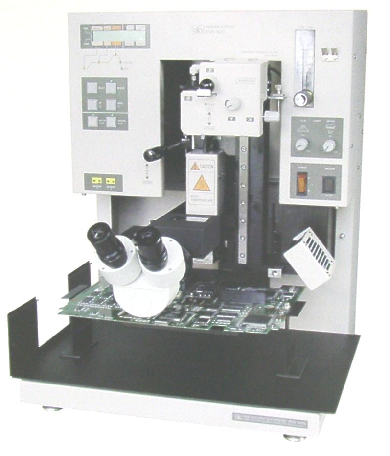 シンプルな光学系が明瞭度を高め、 双眼顕微鏡による立体映像で 位置合わせが容易です。 温度プロファイルの設定は、プッシュSWの 操作で容易にでき、液晶部に表示されます。 リフローの経過時間はインジケータランプに 表示され作業の現状が簡単に確認できます。 顕微鏡の採用で小型SMD等の 位置決めが確実です。 余裕のあるヒータと特殊構造のノズルの 採用で温度分布の均一性を図っています。 コンプレッサー・真空ポンプ内臓で、 外部供給エアーは不要です。 クーリング装置付で作業時間の短縮と 安定した作業ができます。 |